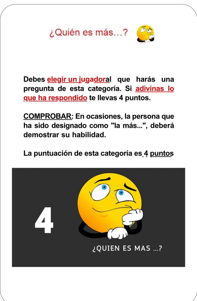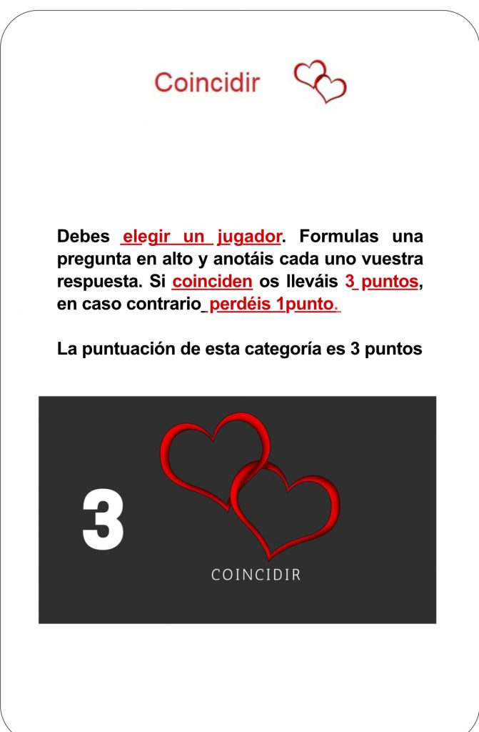 Eliges un jugador y cada uno apunta su respuesta. Si respondéis lo mismo, te llevas 3 puntos pero ¡Ojo!, en caso contrario los dos perdéis 1 punto