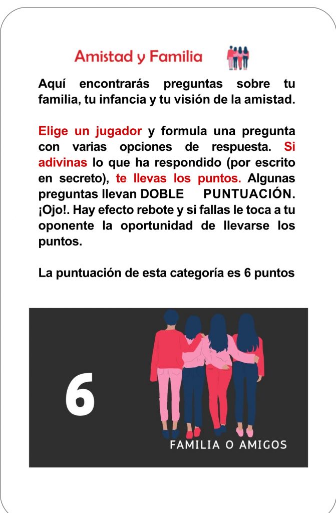 Con el asesoramiento de un coach y una psicóloga, hemos creado para ti 250 preguntas organizadas en 6 secciones: Familia y Amigos, Verdad o reto, Quién es mas, Coincidir, Verdad o Bulo, Gustos y  Hobbies.